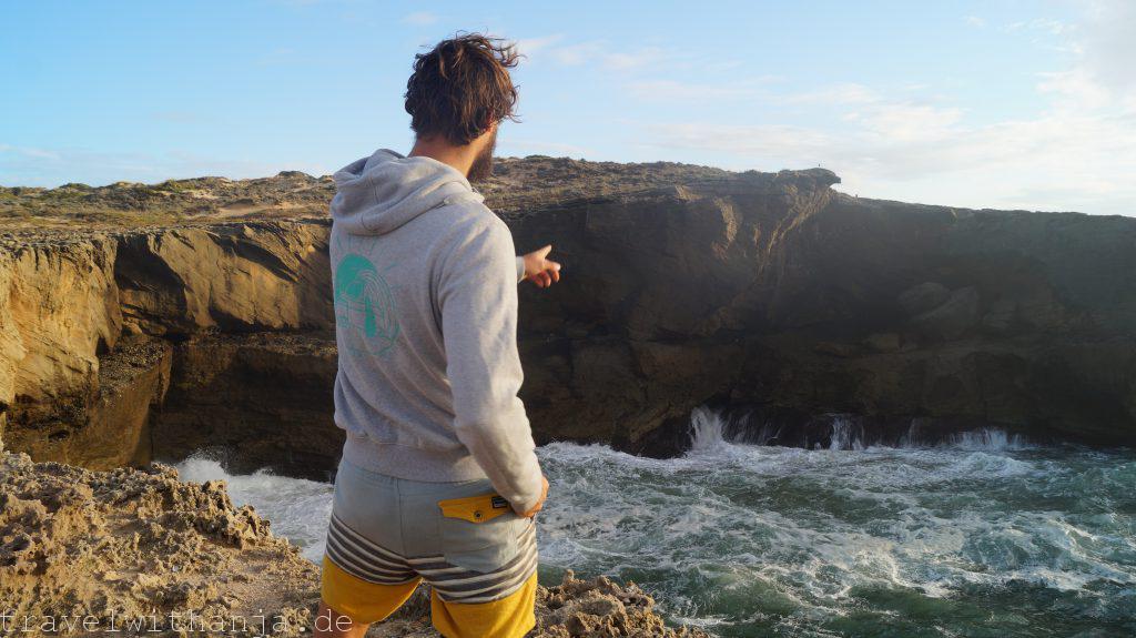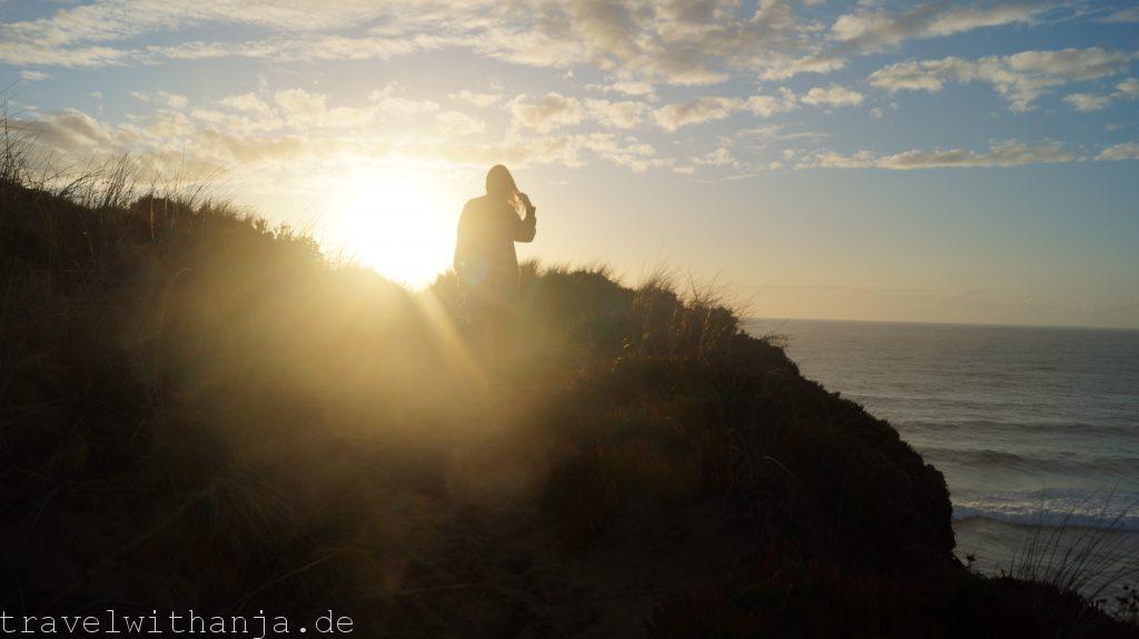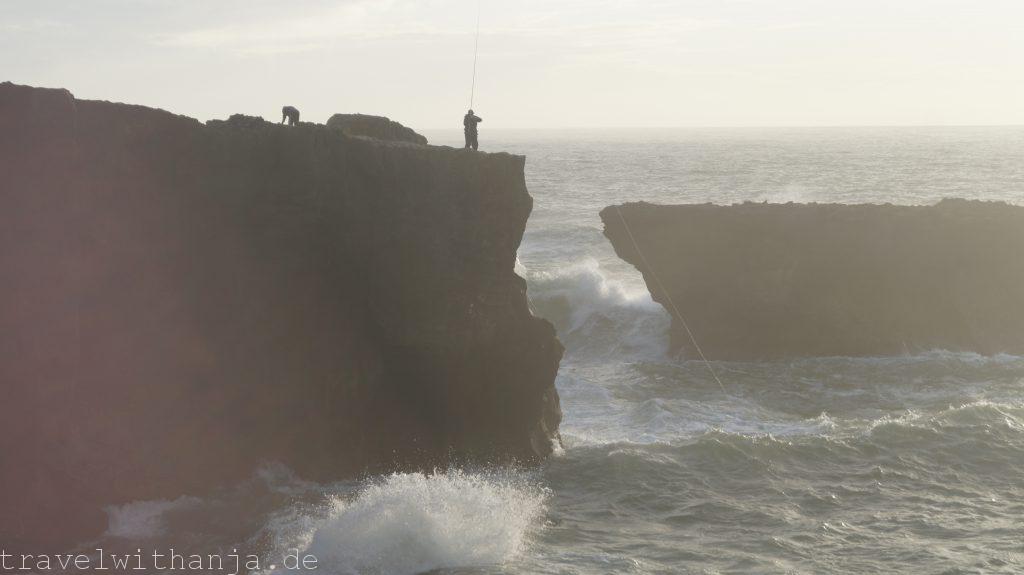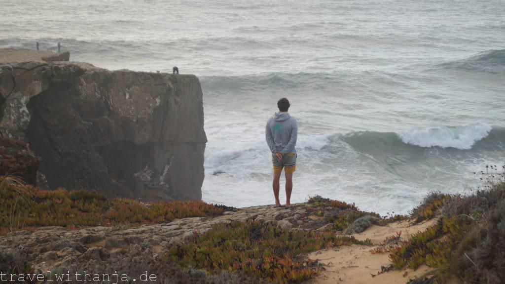 Am Mittwoch war es Zeit mal wieder weiter zu fahren. Nach der Arbeit fuhren wir Richtung Süden. Wir schauten uns einen traumhaften Strand passend zum Sonnenuntergang an. Der Praia do Malhao war fast menschenleer. Nur auf den Felsen standen einige Fischer, welche im tosenden Meer angelten. Die Wellen waren riesig. Als wir auf den Klippen standen und auf das Meer hinab blickten, konnten wir die Kraft des Meeres spüren. Es war wunderbar!