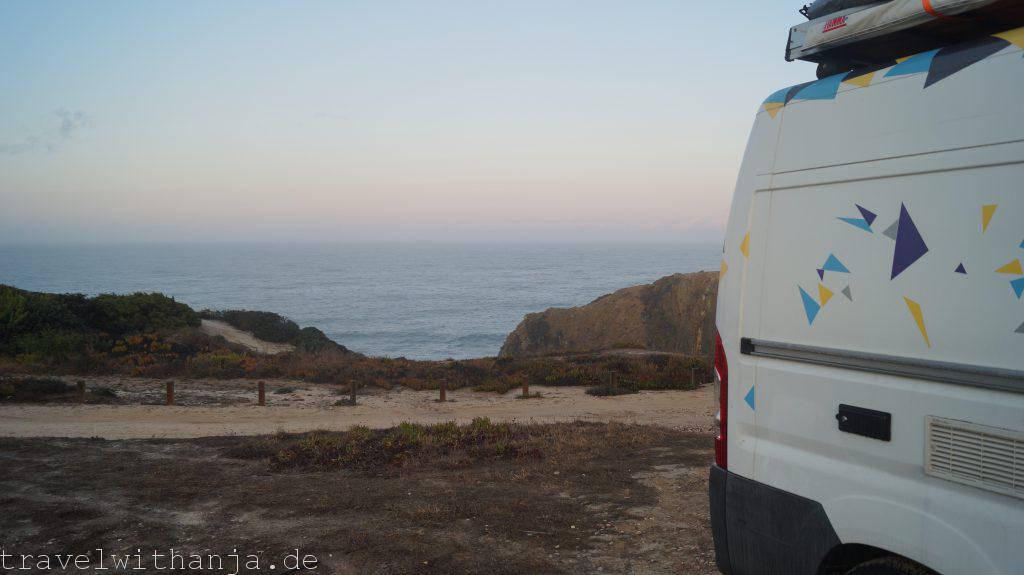 Anschließend fuhren wir wieder zum Praia da Amoreira, wo wir einen guten Schlafplatz entdeckt hatten. Eigentlich wollten wir noch zum Strand gehen, jedoch fing es dann an zu regnen und es hörte auch kurz vorm dunkel werden erst wieder auf. Also kochten wir uns was leckeres und machten uns einen gemütlichen Camperabend.