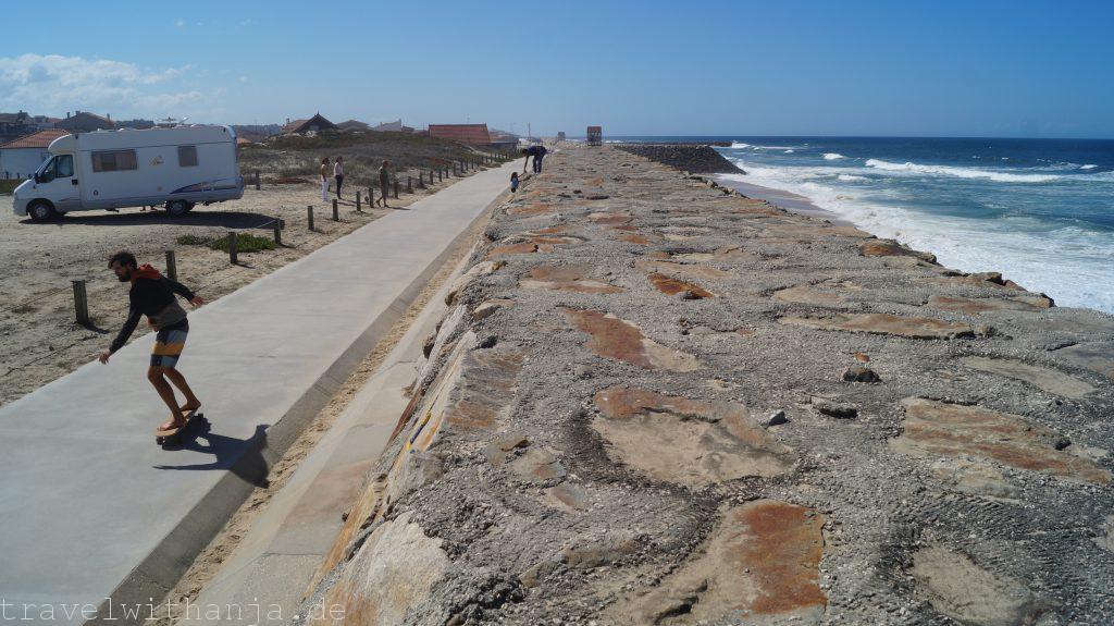 Nach der Arbeit am Freitag fuhren wir erstmal nach Esposende, wo es eine Wasser- und Entsorgungsstation gibt. Eigentlich wollten wir danach dort zum Kitespot. Allerdings fiel bei der Toilettenentleerung der Verschlussdeckel leider in den Abfluss…