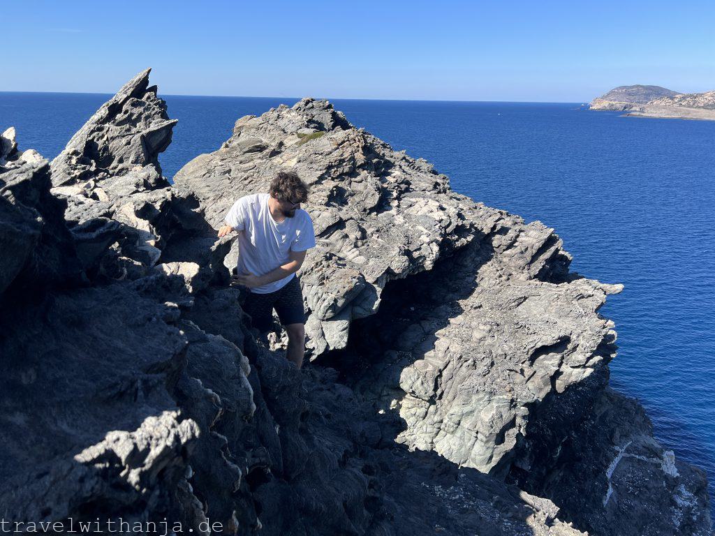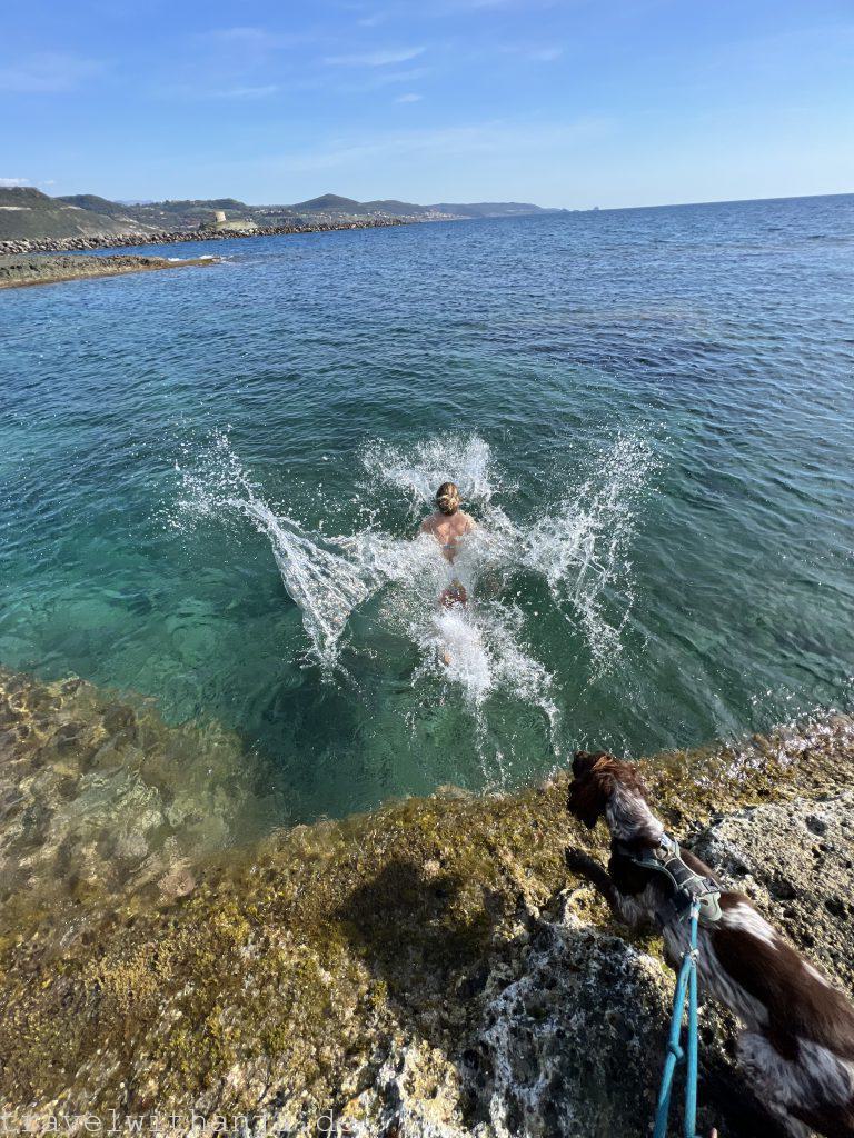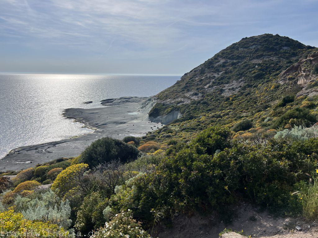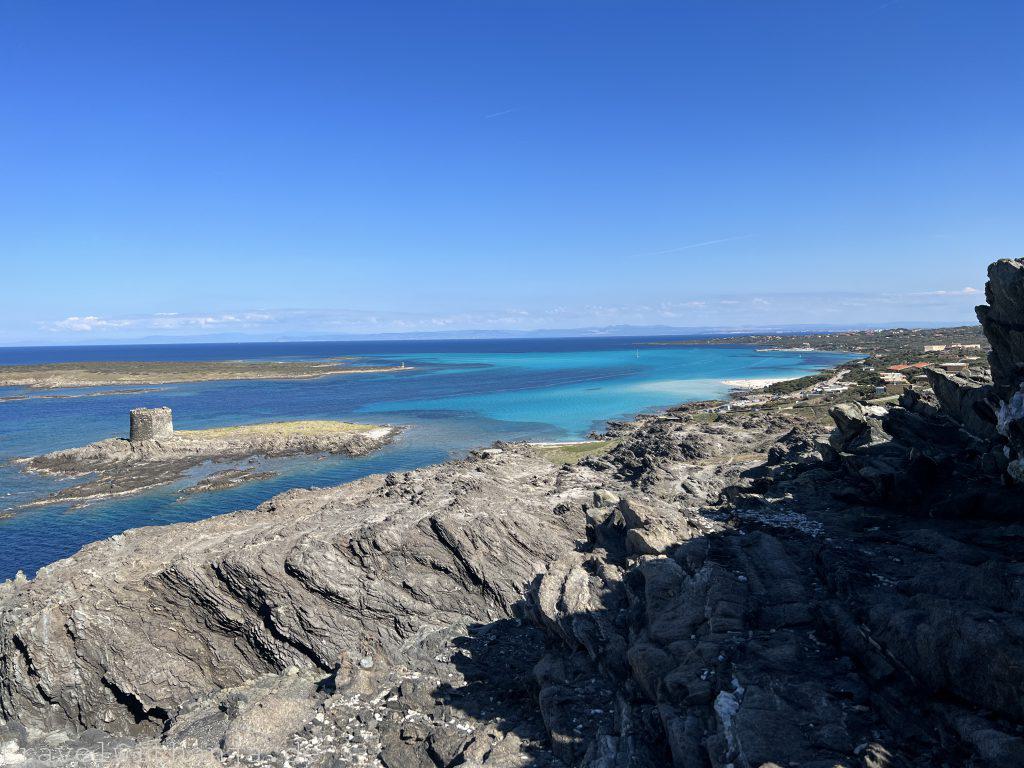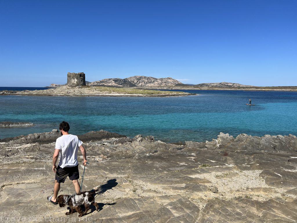 Nach dem 2. Arbeitstag auf Sardinien ging es dann endlich weiter Richtung Westküste. Wir haben uns die nördlichste Spitze an der Westküste angeschaut, das Kap Torre Pelosa und sind mit Grobi über die Felsen geklettert. Das Wasser war türkiesblau und die Strände ganz weiß. Anschließend ging es weiter Richtung Süden.