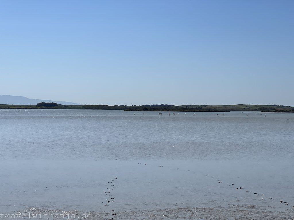 Wir fuhren am nächsten Tag weiter Richtung Süden und entdeckten zufällig Flamingos in einem Naturschutzgebiet, Stagno Sale Porcus. Das war definitiv ein Highlight! Als wir weiterfuhren sahen wir in anderen seichten Gewässern sogar noch weitere.