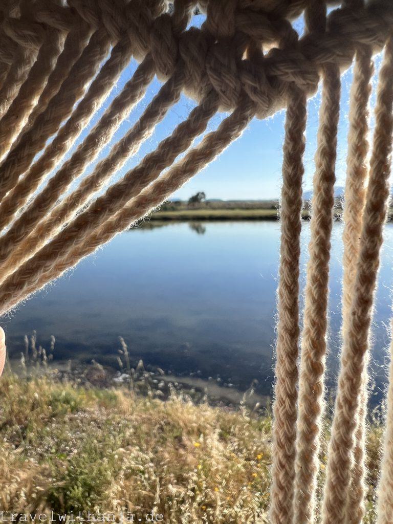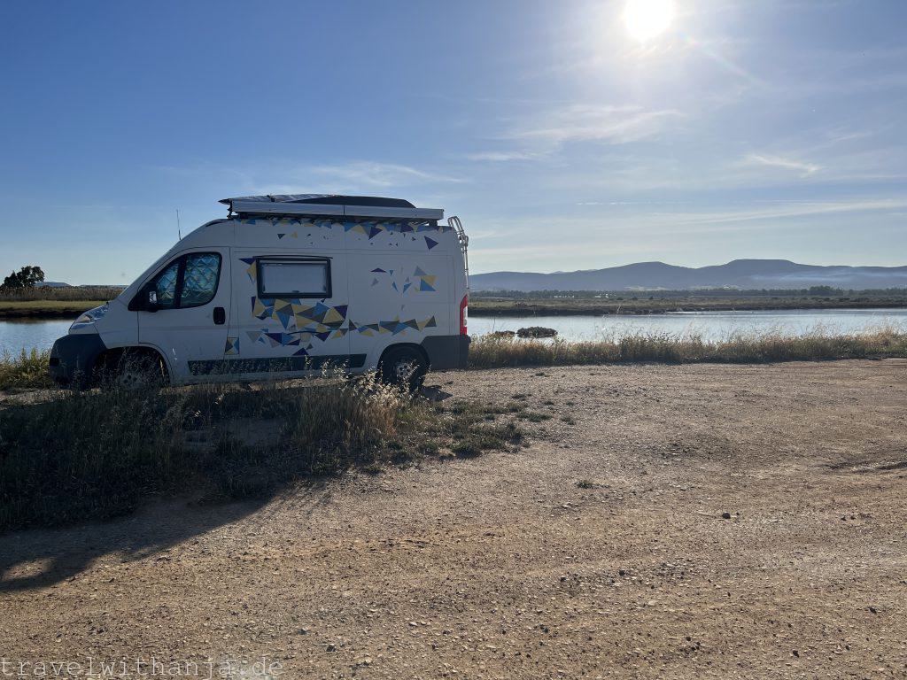 Wir fuhren weiter und entdeckten einen schönen langen weißen Strand, Spiaggia di Punta Acqua Durci. Da das Wetter perfekt für einen Strandtag war, entschlossen wir uns kurzer Hand dafür dort zu bleiben. Einige weitere Vans und Wohnwagen parkten ebenfalls an dem Strand und es schien ein beliebter Ort zu Übernachten zu sein. Allerdings gab es gegen Abend viele Mücken, weshalb wir weiter fuhren und an einem See in Santa Giusta übernachteten.