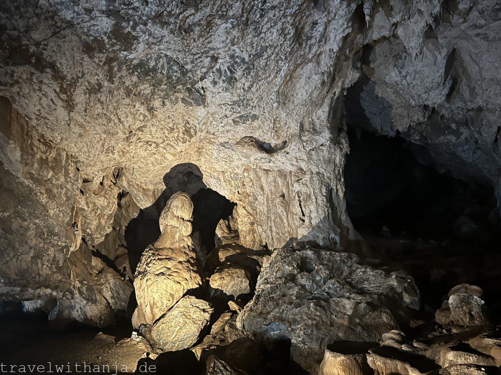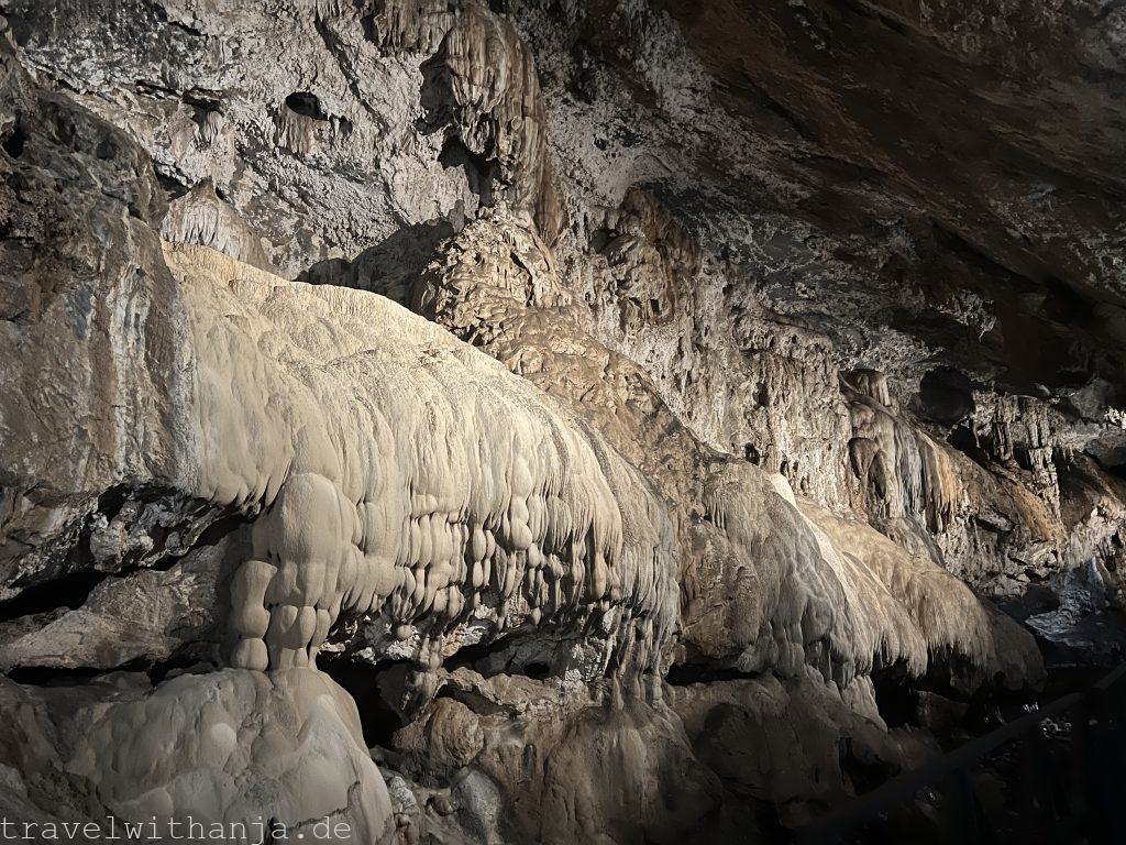 Nach der Kitesession fuhren wir wieder weiter nördlich in die Berge zu einem Stellplatz bei der Grotte Sant Giovanni. Nach einer ruhigen Nacht besuchten wir am nächsten morgen die lange Grotte, welche früher ein Kutschenweg durch den Berg war. Vor ein paar Jahren konnte man noch kostenlos durch den Berg laufen. Jetzt muss man Eintritt zahlen für eine Stunde oder den ganzen Tag, falls man auf der anderen Seite weiter wandern möchte und später durch die Grotte wieder zurück gehen muss. Hunde sind in der Grotte erlaubt, was sehr gut war, da wir Grobi dann mitnehmen konnten.