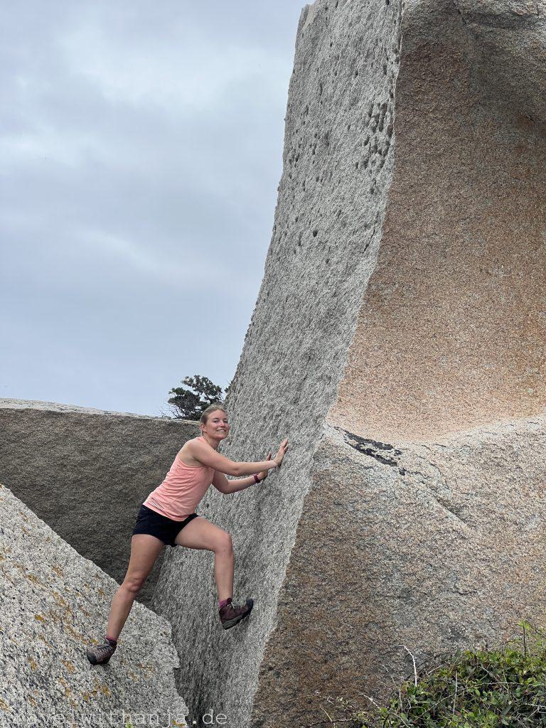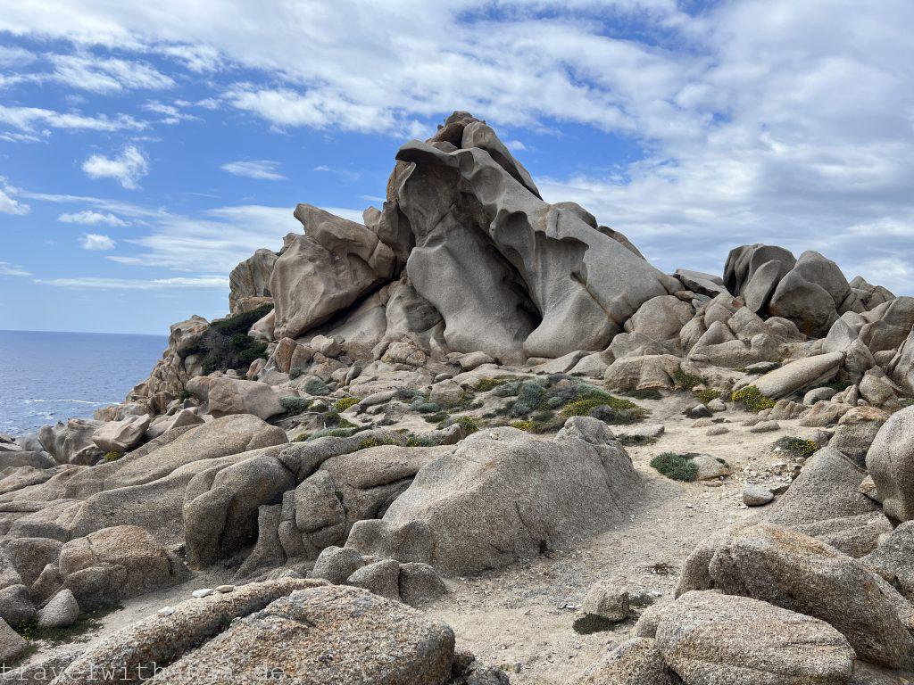Nach dem Tauchen traf ich Sven wieder und wir fuhren zum Capo Testa weiter im Norden. Die Halbinsel ist für Schildkröten und ihre beeindruckenden Felsformationen bekannt. Wir machten eine Rundwanderung über die Halbinsel. Die runden Felsformationen erinnerten mich an Steinen auf karibischen Inseln. Sie waren traumhaft schön. Zwischen den Felsen versteckten sich zudem kleine weiße Sandbuchten. Wir hielten immer Ausschau nach Schildkröten. Und tatsächlich lief plötzlich vor uns eine über den Weg. Auch diese Wanderung stellte sich wieder als anspruchsvoller heraus, da wir teilweise über kleine Pfade durch die Felsformationen klettern mussten. Abenteuer pur!