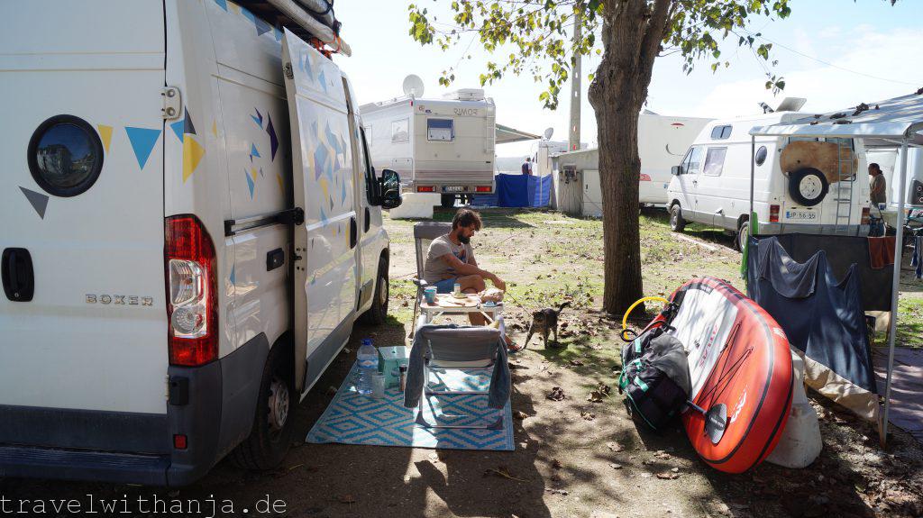 Am Donnerstag fuhren wir wieder Richtung Norden zur Lagoa di Obidos, da der Wind sehr vielversprechend aussah für die nächsten Tage. Wir versuchten es allerdings erstmal surfen zu gehen. Jedoch waren die Wellen dort sehr riesig. Also machten wir nur einen Strandspaziergang und genossen die Meeresbriese und das tobende Meer. Für die nächsten Tage hatten wir uns auf dem Wohnmobilstellplatz direkt an der Lagune einquartiert.