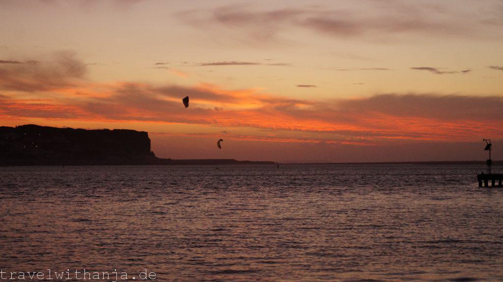 Endlich kam am Sonntag der perfekte Wind und wir konnten kiten gehen. Eigentlich wollten wir nur zwei Nächte bei der Lagune auf dem Wohnmobilstellplatz bleiben, aber da der Wind vielversprechend aussah, verlängerten wir. Die Lagune ist perfekt für Anfänger und Fortgeschrittene. Man kann perfekt über das flache Wasser gleiten und insbesondere wenn das Wasser steigt bietet die Lagune auch mehr Platz für den zum Glück nicht allzu überlaufenden Kitespot. Dieser Spot ist auf jeden Fall mit einer unserer Lieblingskiteorte in Portugal – bis jetzt. 🙂 Um euch einen kleine Einblick vom Kiten zu geben, folgt die Tage noch ein kurzes Kitevideo.