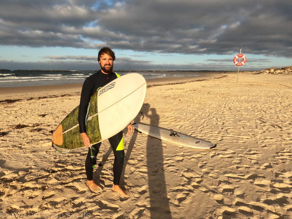 Am Dienstag musste ich lange arbeiten. Sven holte sich in einem kleinem Surfladen in Peniche ein neues Surfboard als Geburtstagsgeschenk. Ein neuseeländisches Deviled Egg Board von Hybrid, welches wir ein paar Tage zuvor entdeckt hatten und gerade im Ausverkauf war. Die „Gurke“ testete er auch sofort am Nordstrand von Peniche und sie fährt sich traumhaft. Übernachtet haben wir in der Nähe vom Hafen in Peniche auf einem Parkplatz.