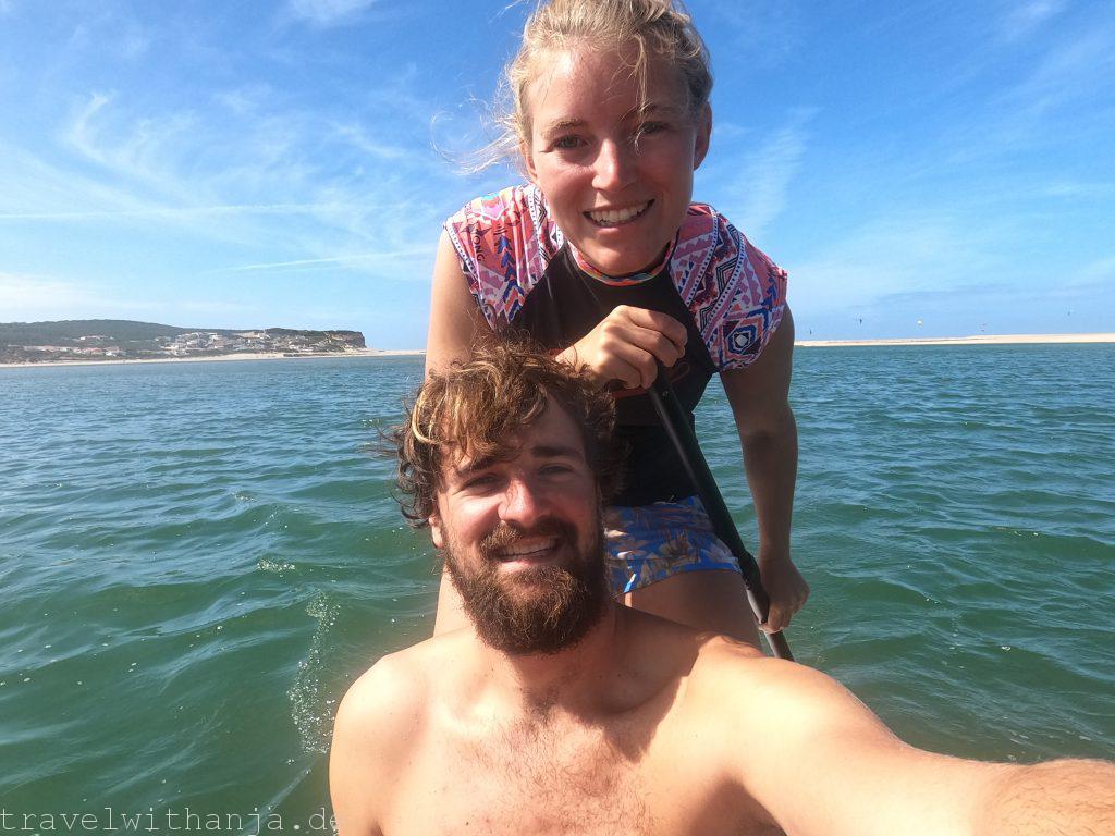Nach zwei Stunden kam ich entschleunigt und glückselig wieder zurück zum Camper. Sven hatte ein Mittagsschläfchen gemacht und war jetzt bereit für etwas Action. Also fuhren wir wieder zurück nach Peniche und gingen surfen. Vorher machten wir noch schnell ein gemeinsames SUP-Selfie.