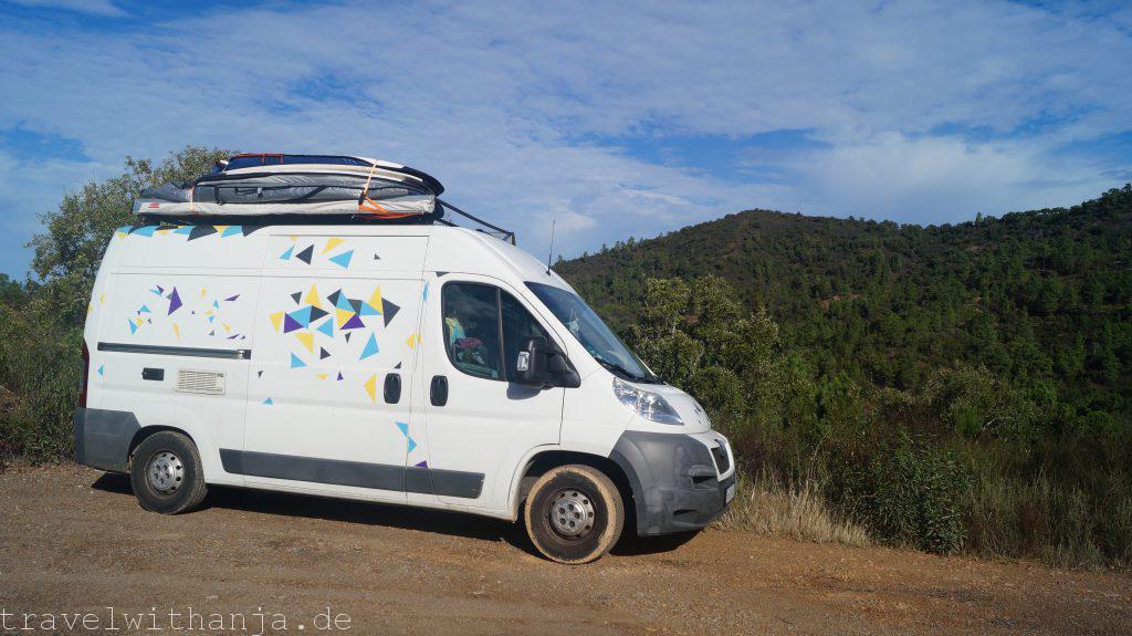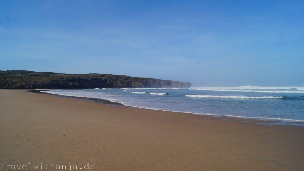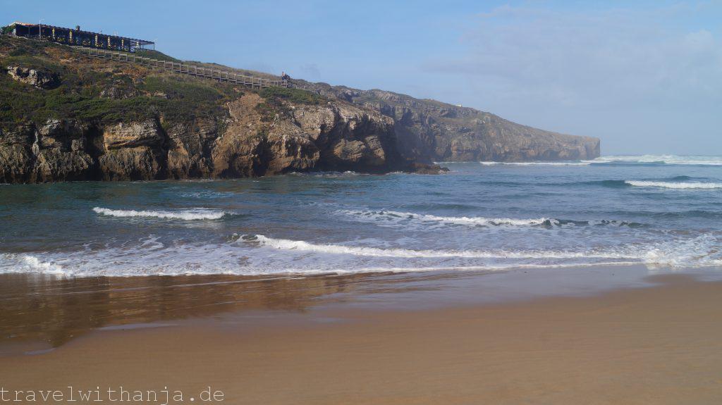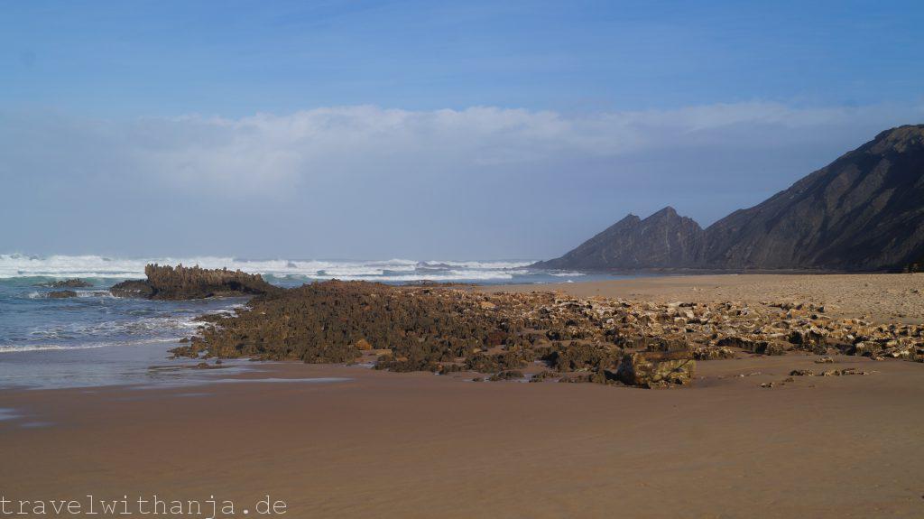 Wir hatten am Montag mal wieder Lust ein wenig Bergluft zu schnuppern und unser neues Kletterseil weiter zu testen. Erstmal frühstückten wir jedoch am Praia de Amoreira am Strand, wo wir auch übernachtet hatten und ich machte einen Strandspaziergang. Die Wellen waren leider zu groß und stürmisch für uns zum Surfen. An sich ist der Strand aber bei optimalen Wellen sicher sehr gut geeignet zum Surfen und auch ein beliebter Spot. Vielleicht kommen wir hier hin zurück für eine Session.