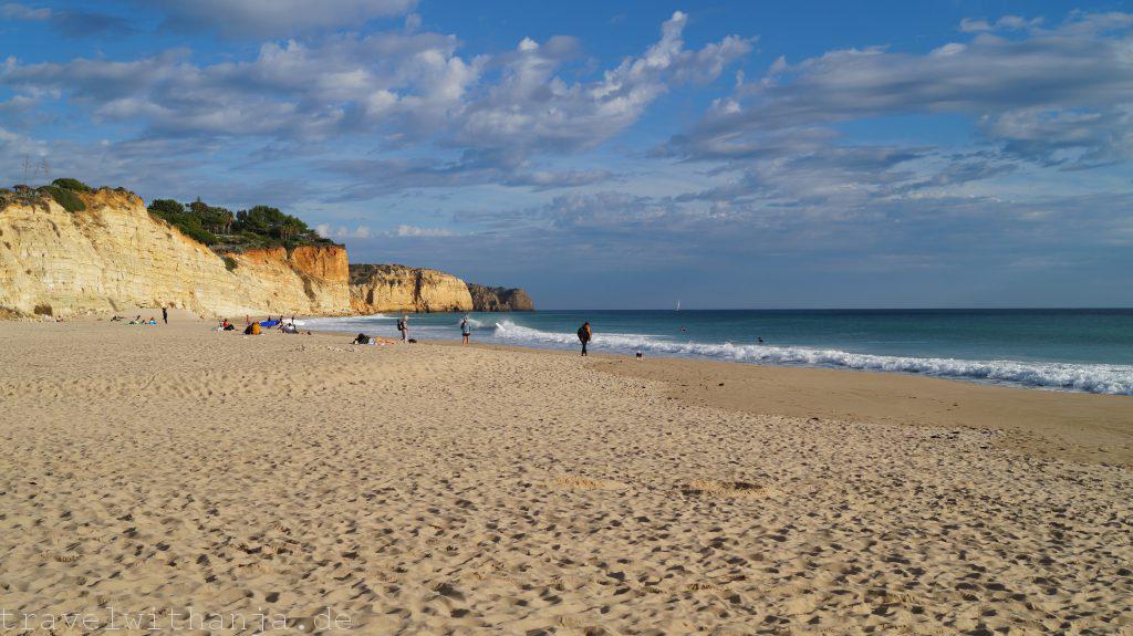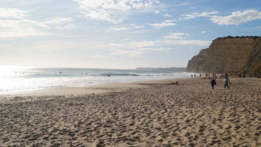 Da unsere Stellplatznachbarn uns den Strand Praia Porto de Mos empfohlen hatten, an dem man angeblich den ganzen Tag tidenunabhängig surfen könnte, fuhren wir dort am Sonntag hin. Schon vom Parkplatz sahen die Wellen klein aus. Allerdings waren einige Surfer auf dem Wasser. Also probierten wir es. Es ist auf jeden Fall ein sehr guter Anfängersurfspot. Also nutzten wir es als Trainingstag und übten einen schnelleren Take-off. Bei kleinen Wellen ist das gar nicht so einfach. Mit dem Longboard funktioniert es allerdings deutlich besser. Seit langem konnten wir es mal wieder rausholen und es machte Spaß!