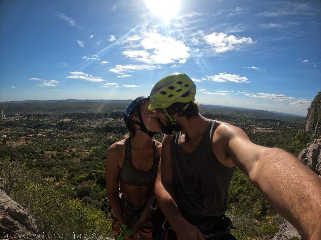 Unsere erste Urlaubswoche starteten wir in den Bergen an der Algarve. Wir hatten Glück und das Wetter war noch einmal richtig sommerlich, sodass wir nach ein paar Klettersessions am Meer bei strahlender Sonne und 24 Grad entspannen und an unserer Sommerbräune arbeiten konnten. Zum Ende der Woche ging es von der östlichen Seite Portugals wieder Richtung Westen zum Surfen.